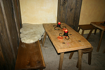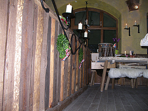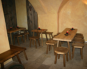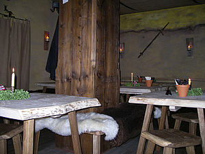 Ein mittelalterliches Wirtshaus steht und fällt mit seiner Einrichtung. Der Gast erwartet sich nicht nur ausgewählte Speisen, sondern auch ein historisches Ambiente. Neben Sitzmöbeln müssen alle technisch notwendigen Bauteile wie Tresen, Lüftungsschächte und Stahlträger dem mittelalterlichen Flair gerecht werden.