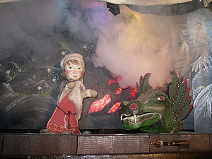 Stephan schnitzt die Köpfe, modelliert Drachen und tüftelt an der Technik. Daniela schneidert die Gewänder der Puppen, bemalt die Gesichter und gibt Ihnen ihre Charaktere. Aus glatten Holztafeln entstehen unter ihren Händen traumhaft schöne Kulissen.